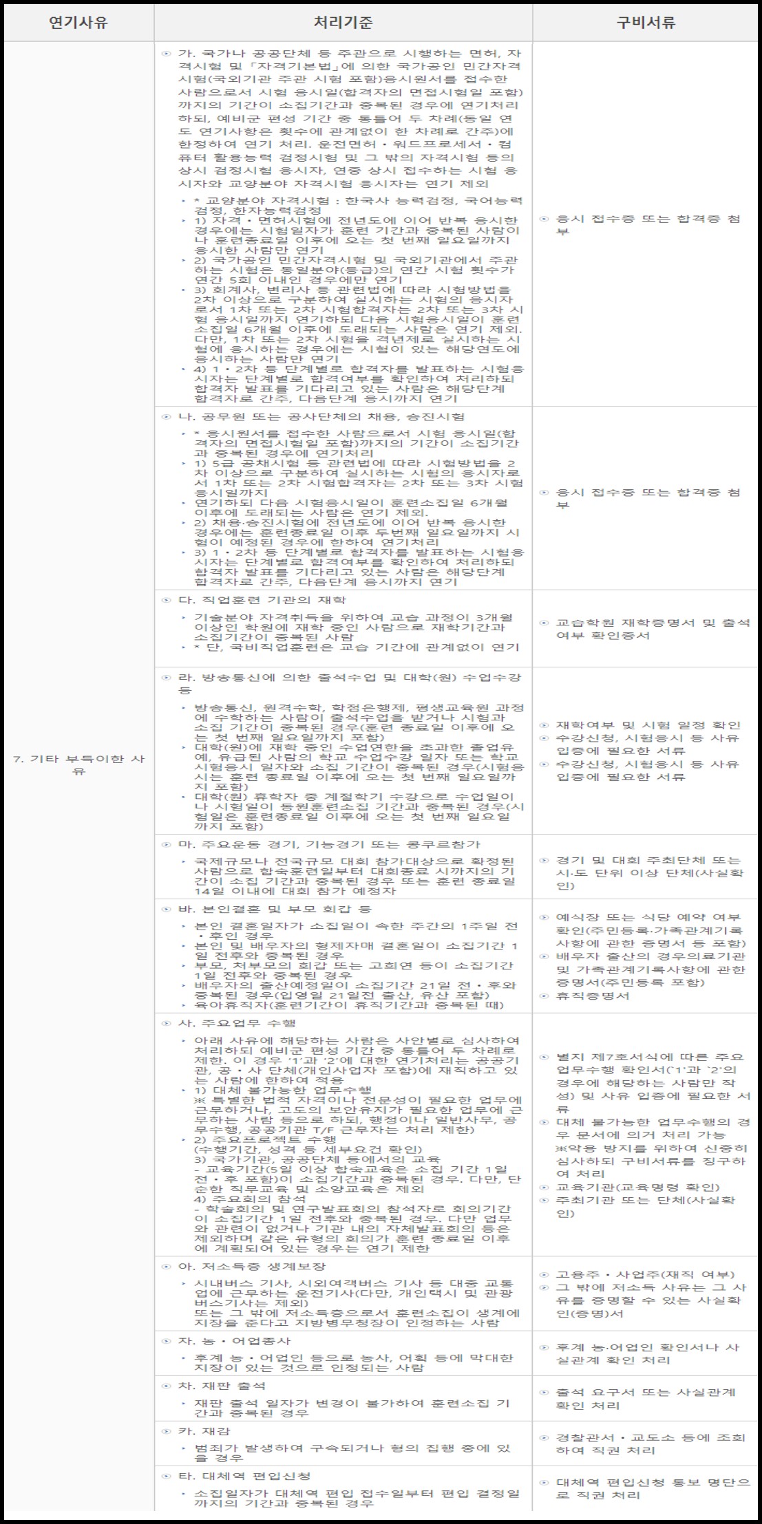🎈 연기사유가 갑자기 발생 시 관할 병무청으로 구두 신고(3일 이내 구비서류 제출)